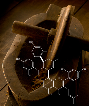 桑の根の部分。一般的には桑の根の周皮を剥がしたものを使用するが、当社ではこの周皮に有用なフラボノイドが多く含まれていることを確認。
